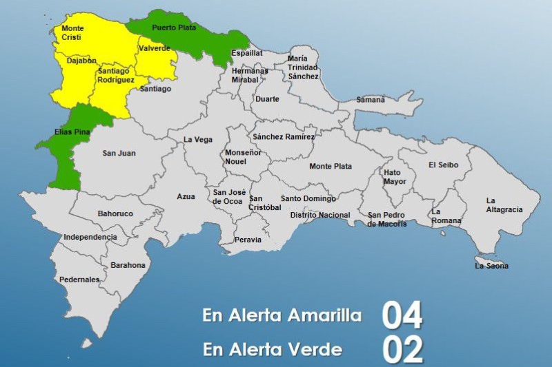 La entidad dejó en alerta verde a las provincias Puerto Plata y Elías Piña. El resto del país no está bajo alerta.