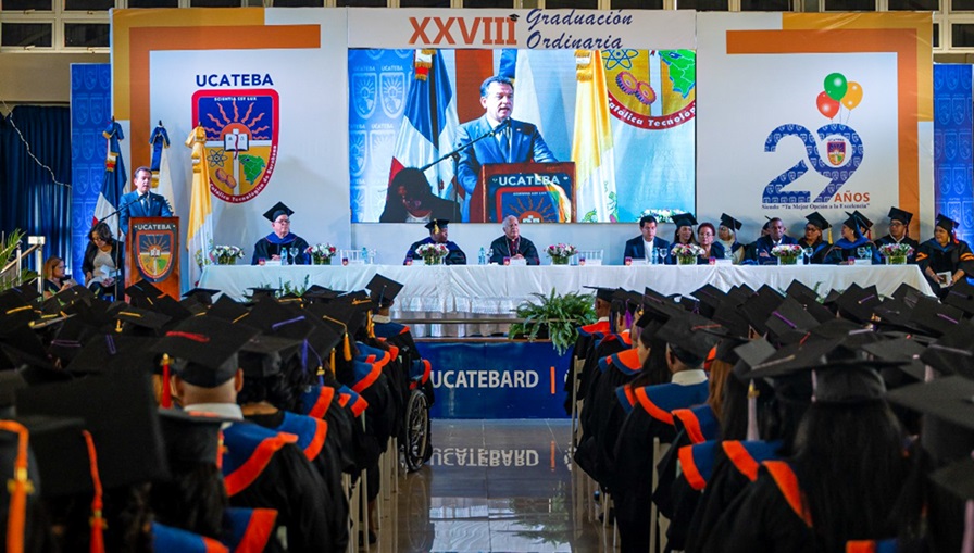 El acto inició con la invocación a Dios a cargo de monseñor Andrés Napoleón Romero Cárdenas, Gran Canciller de la UCATEBA y Obispo de la Diócesis de Barahona, quien ofreció palabras de reflexión y motivación a los presentes.