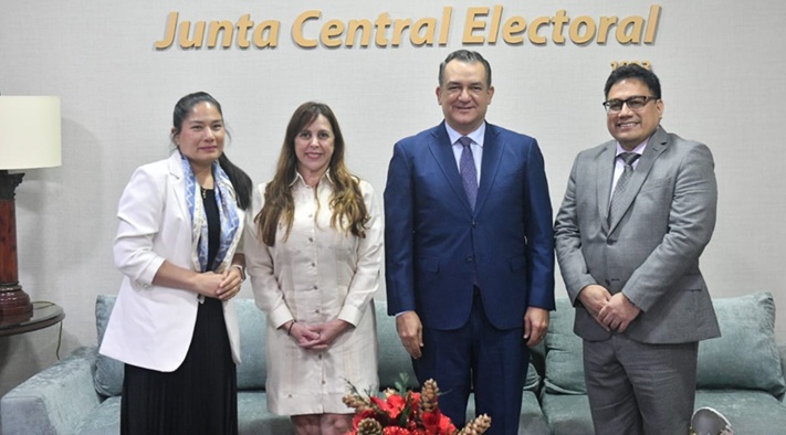 El encuentro se desarrolló en el despacho del presidente del órgano electoral, Jáquez Liranzo, y contó con la participación de María T. Mellenkamp, oficial a cargo del Departamento de Sustentabilidad Democrática y Misiones Especiales de la OEA, y los consultores Giuliana Kaneko de la Rosa y Jorge Kaneko de KM CORP S.A.C.